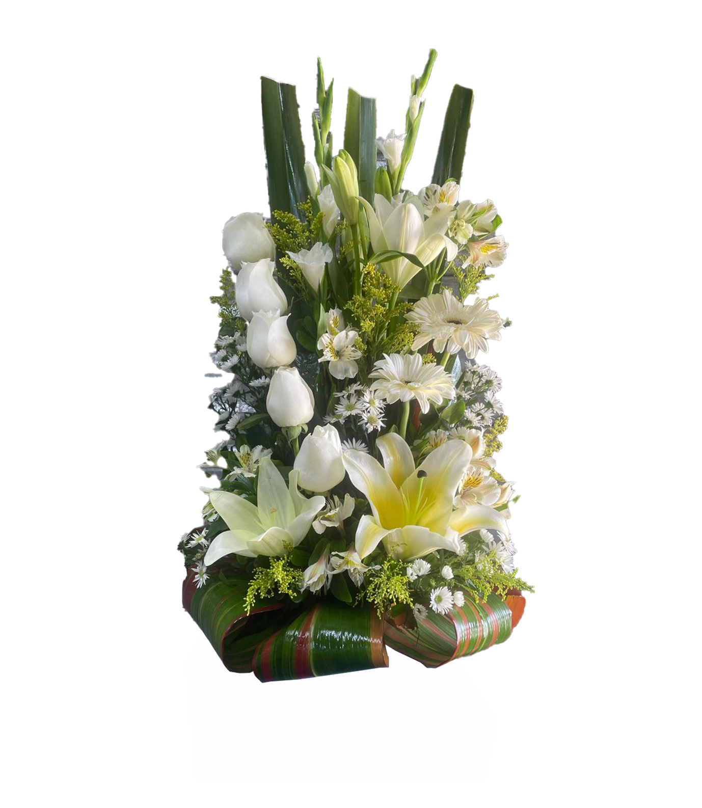 Rosas blancas, concado, gladiolas y complementos (complementos pueden variar a disponibilidad )