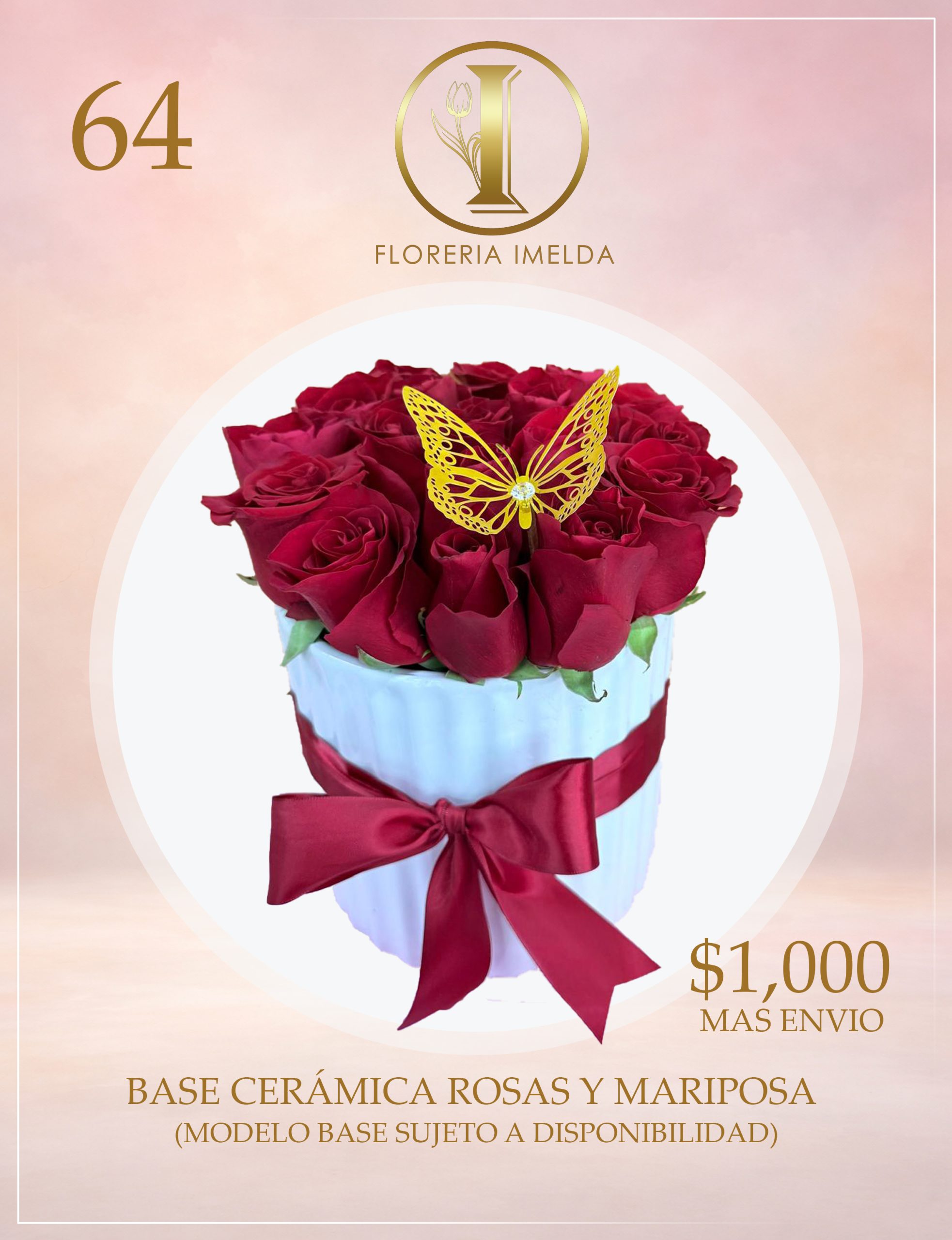 BASE CERAMICA ROSAS Y MARIPOSA Y COMPLEMENTOS (MODELO BASE Y COMPLEMENTOS SUJETO A DISPONIBILIDAD)
