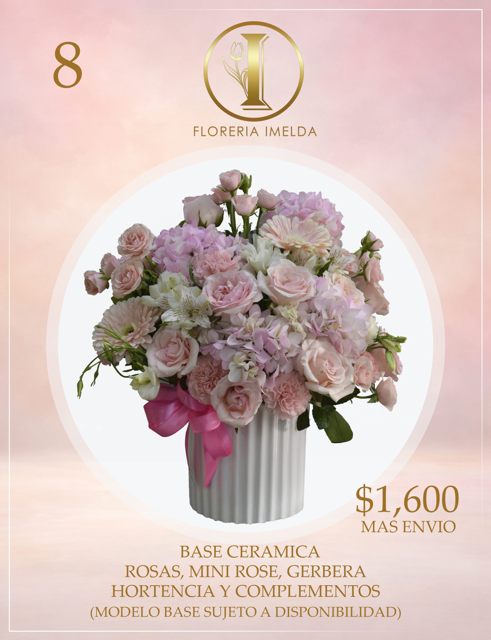 BASE CERAMICA ROSAS, MINI ROSA, GERBERA, HORTENCIA Y COMPLEMENTOS (MODELO BASE Y COMPLEMENTOS SUJETO A DISPONIBILIDAD)