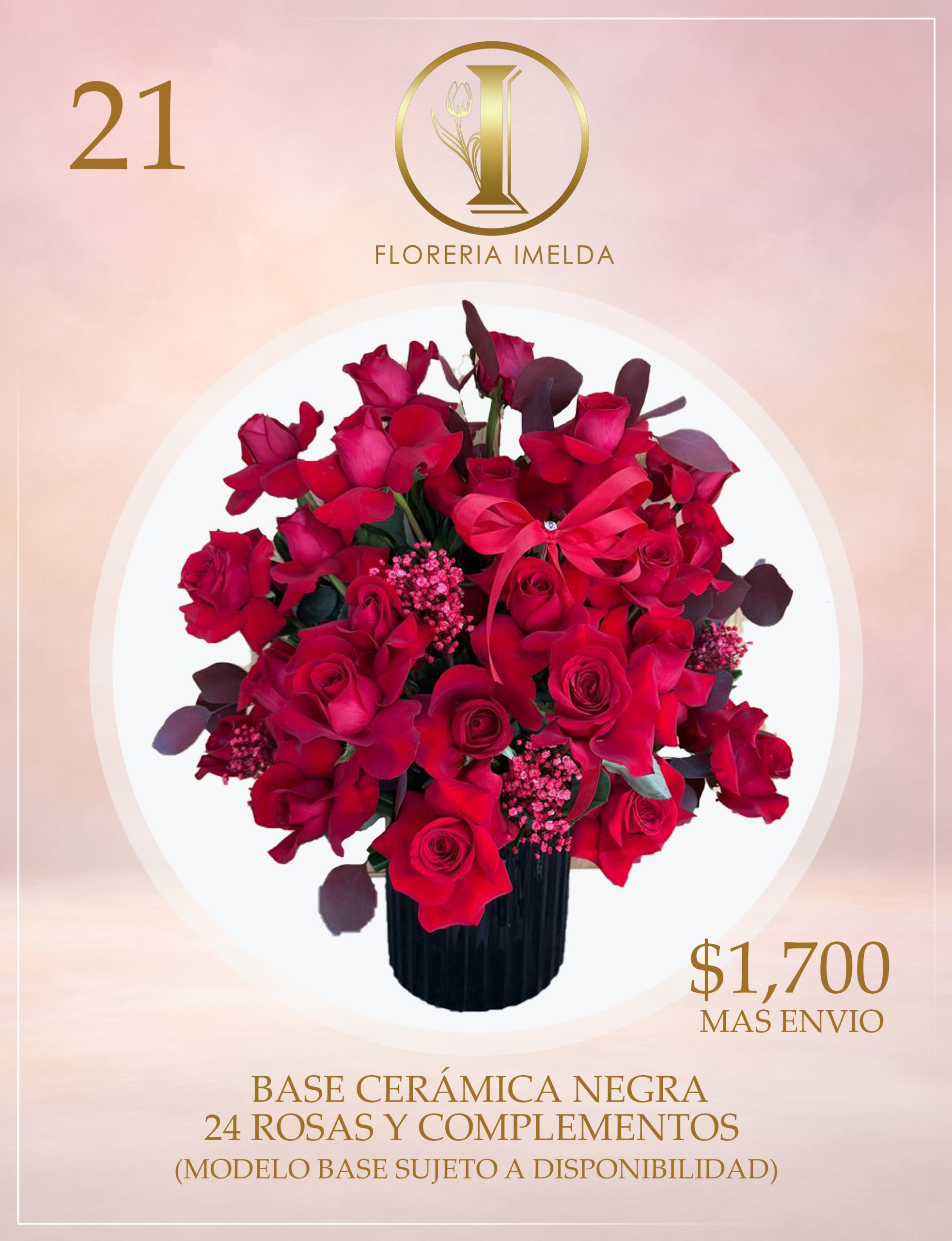 BASE CERAMICA NEGRA 24 ROSAS Y COMPLEMENTOS (MODELO BASE Y COMPLEMENTOS SUJETO A DISPONIBILIDAD)
