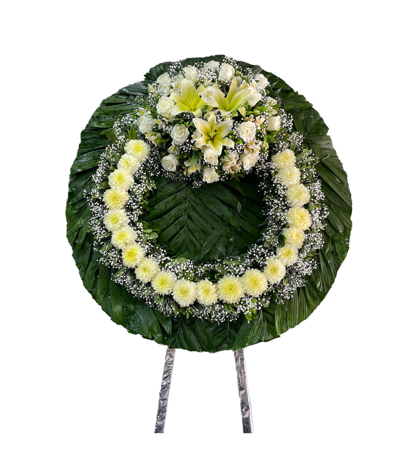 Rosas Blancas, concados, pompones y complementos (complementos pueden variar a disponibilidad)