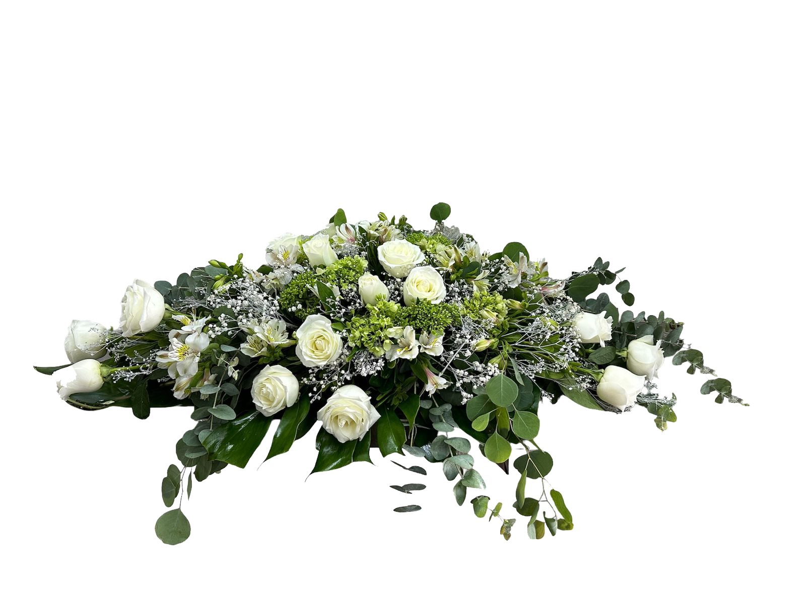 Rosas blancas, hortencias y complementos (complemento puede variar a disponibilidad)