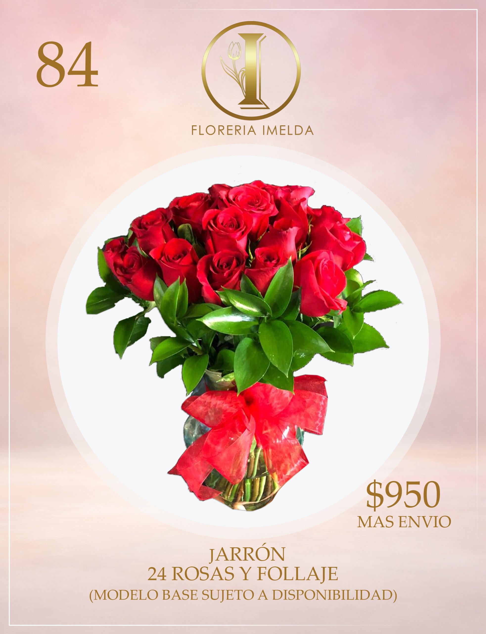JARRON 24 ROSAS Y COMPLEMENTOS (MODELO BASE Y COMPLEMENTOS SUJETO A DISPONIBILIDAD)