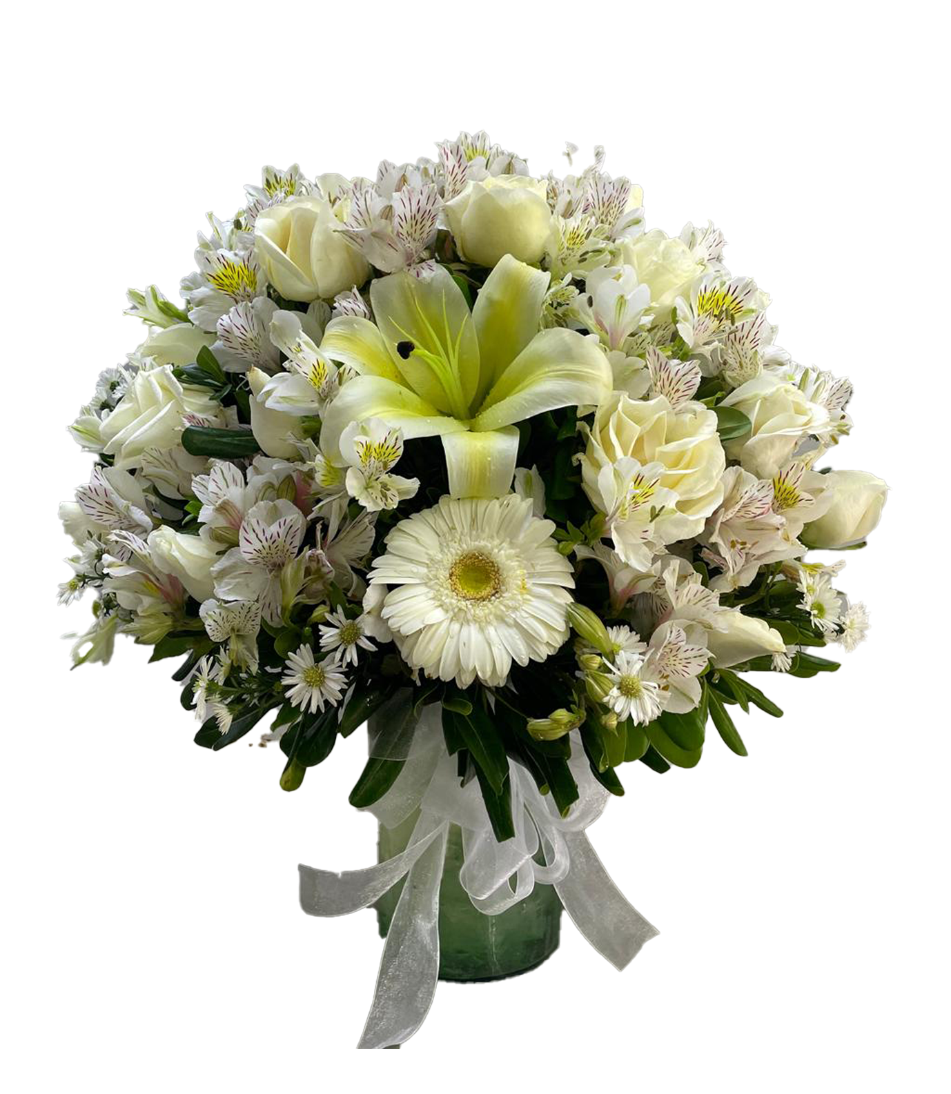 Rosas Blancas, astromelia y complementos (complementos pueden variar a disponibilidad)