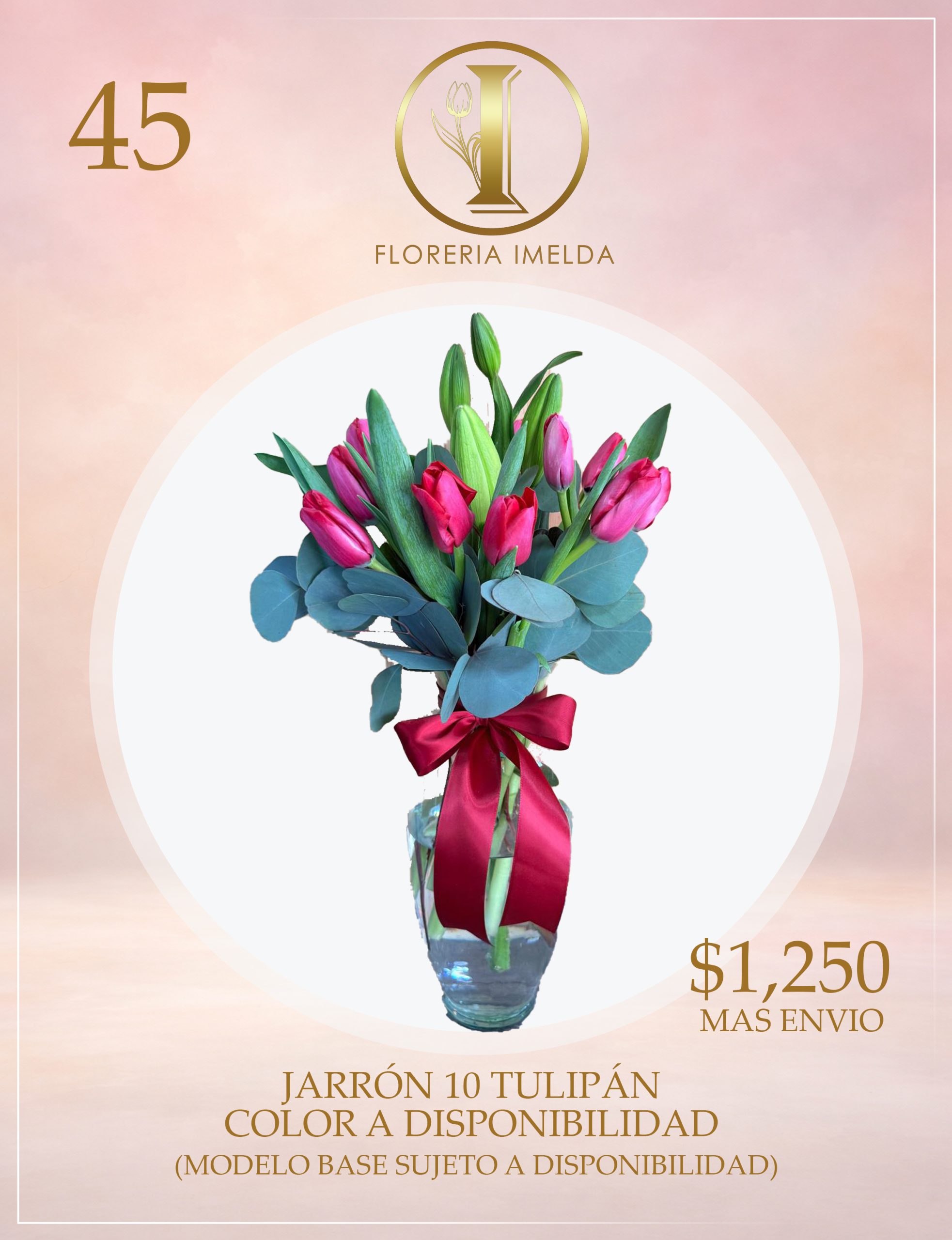 JARRON 10 TULIPANES COLOR A DISPONIBILIDAD (MODELO BASE Y COMPLEMENTOS SUJETO A DISPONIBILIDAD)