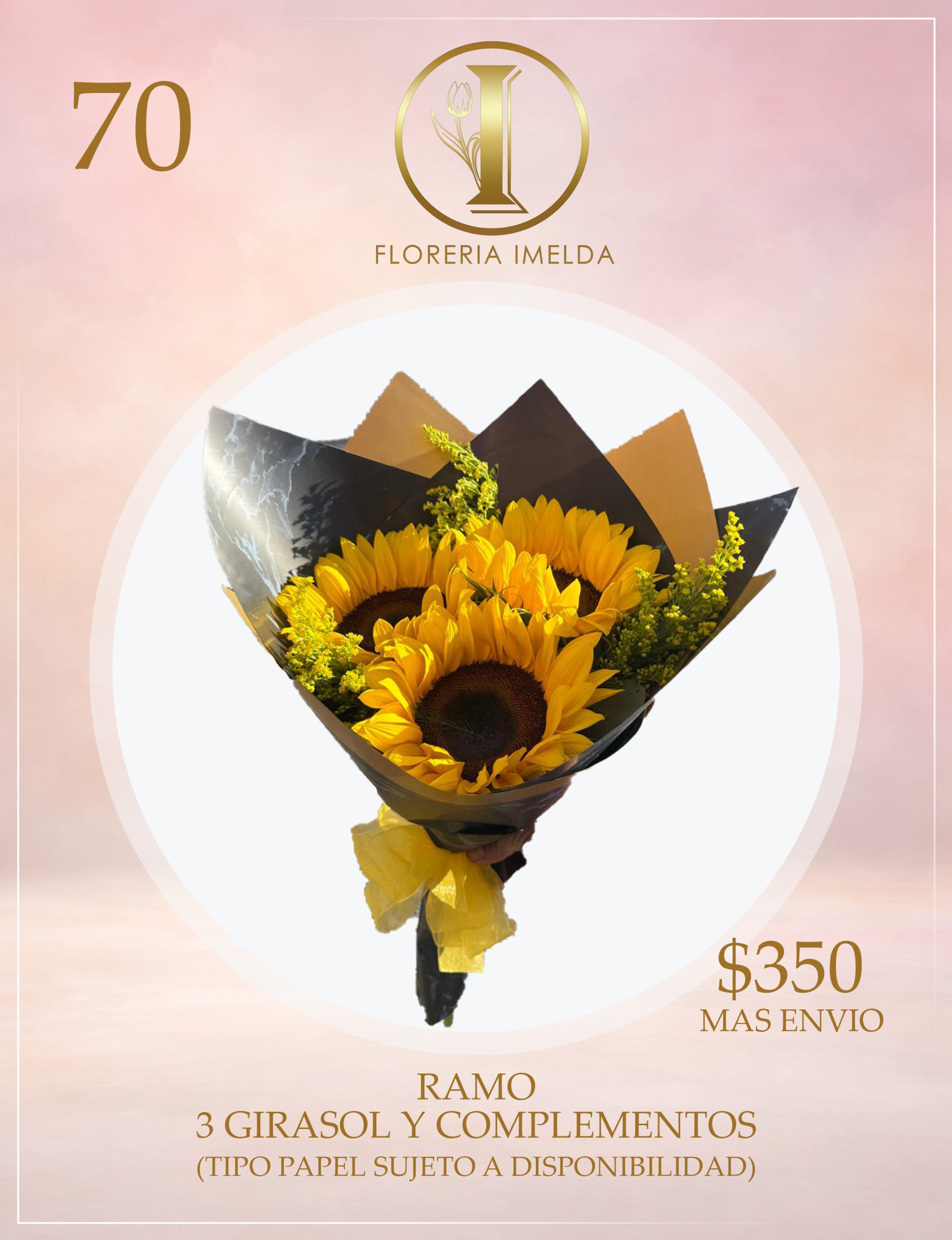 RAMO 3 GIRASOLES Y COMPLEMENTOS (TIPO PAPEL Y COMPLEMENTOS SUJETO A DISPONIBILIDAD)